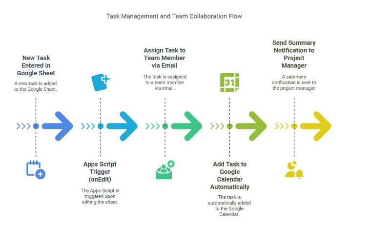 Script Automation: Google Apps Script can automatically create calendar events based on the data in your Google Sheet. When a new event is added to the sheet, the script can add it to your Google Calendar.