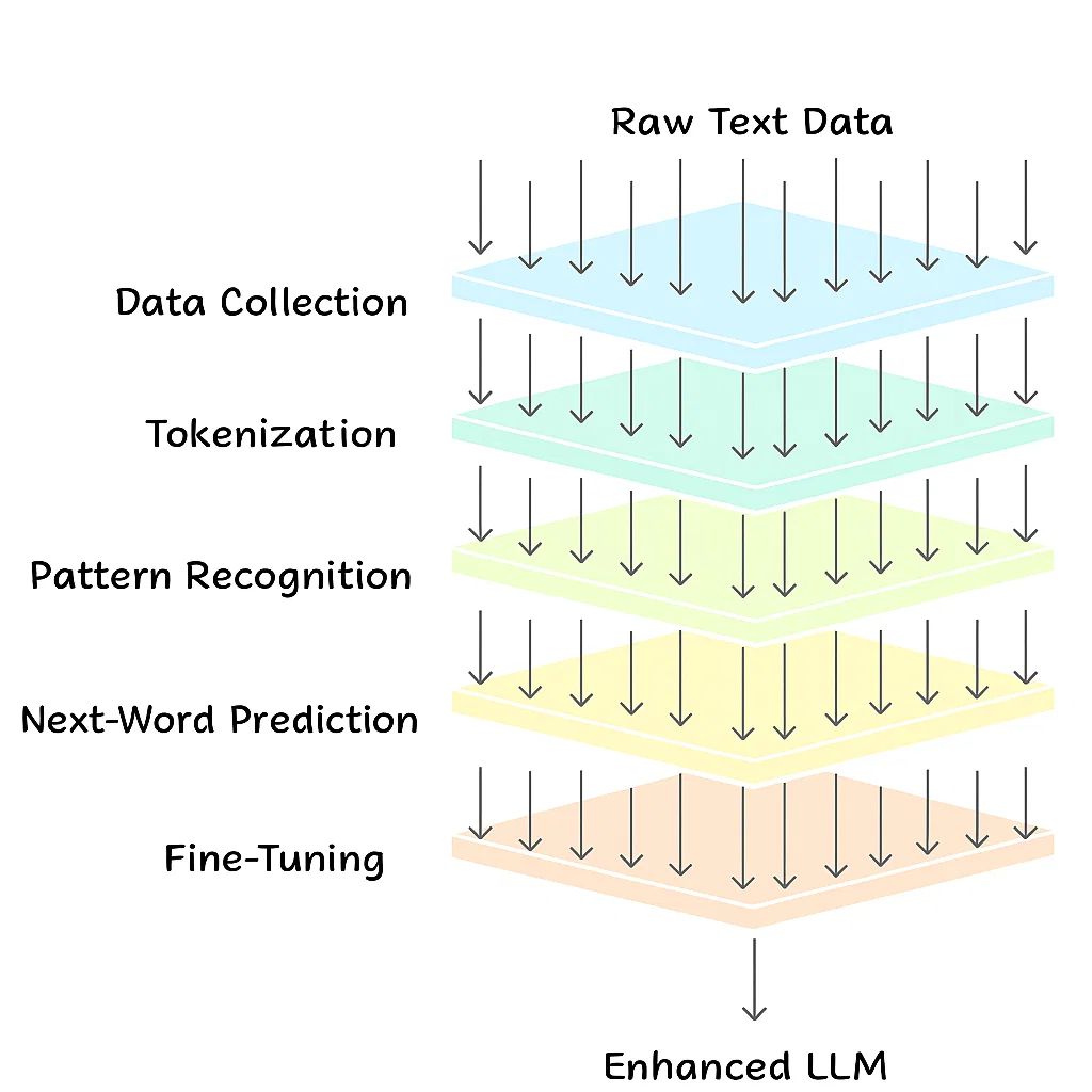 Large Language Models (LLMs) don’t actually “think” like humans they recognize patterns and predict the most likely next word. But how exactly does this learning process work? Let’s break it down.